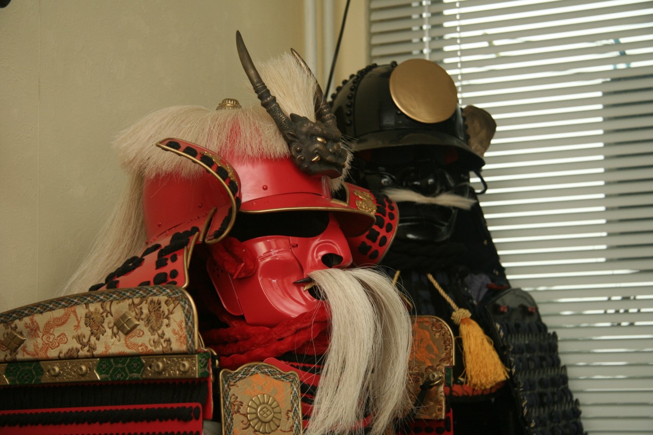 In de collectie kan natuurlijk een Japans harnas niet ontbreken. Het zwarte harnas is inmiddels verkocht maar ik heb nog een fraai exemplaar van Paul Chen Hanwei.